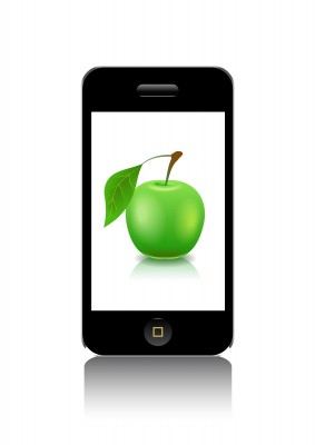 Una manzana como pantalla de un teléfono móvil o celular.