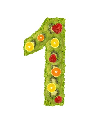 Con las frutas se puede diseñar: El número 1 con kiwis, fresas y naranjas.