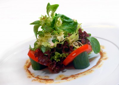 Esta ensalada puede servirnos de referencia para preparar una ensalada de hortalizas diseñada a nuestro gusto y muy decorativa.