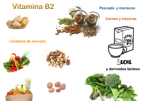 Aunque en menor cantidad también podemos encontrar riboflavina en frutas, hortalizas de colores, pescado blanco, marisco, maíz, arroz, etc.