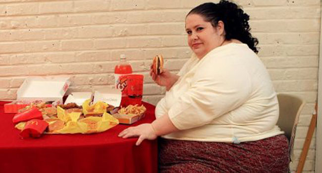 mujer obesa comiendochica con trastorno de anorexia nerviosa