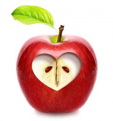 Etiquetado composición, corazón, fruta, imagen creativa, manzana