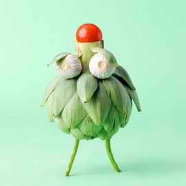 La imagen que ilustra esta entrada representa un muñeco con el cuerpo de alcachofa, ojos de ajo y cabeza de tomate cherry. Solo nos queda inventarnos una historia que acompañe al protagonista para que un niño se ría.