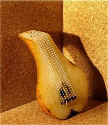 La forma de esta fruta partida, evoca a un laúd, que podemos terminar de crear con imaginación.