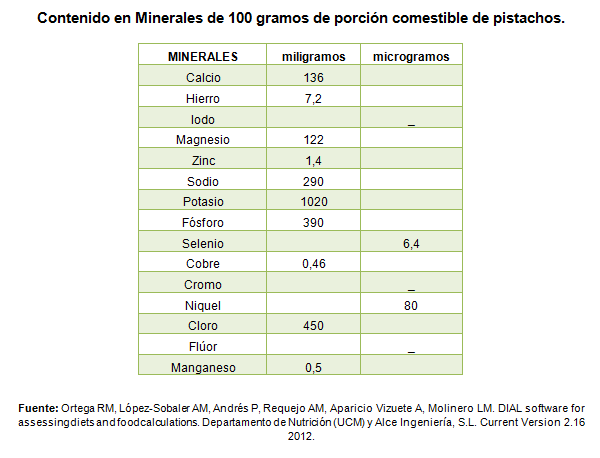 Para completar la información que nos han dado, vamos a conocer con más detalle la composición nutricional del pistacho (4):